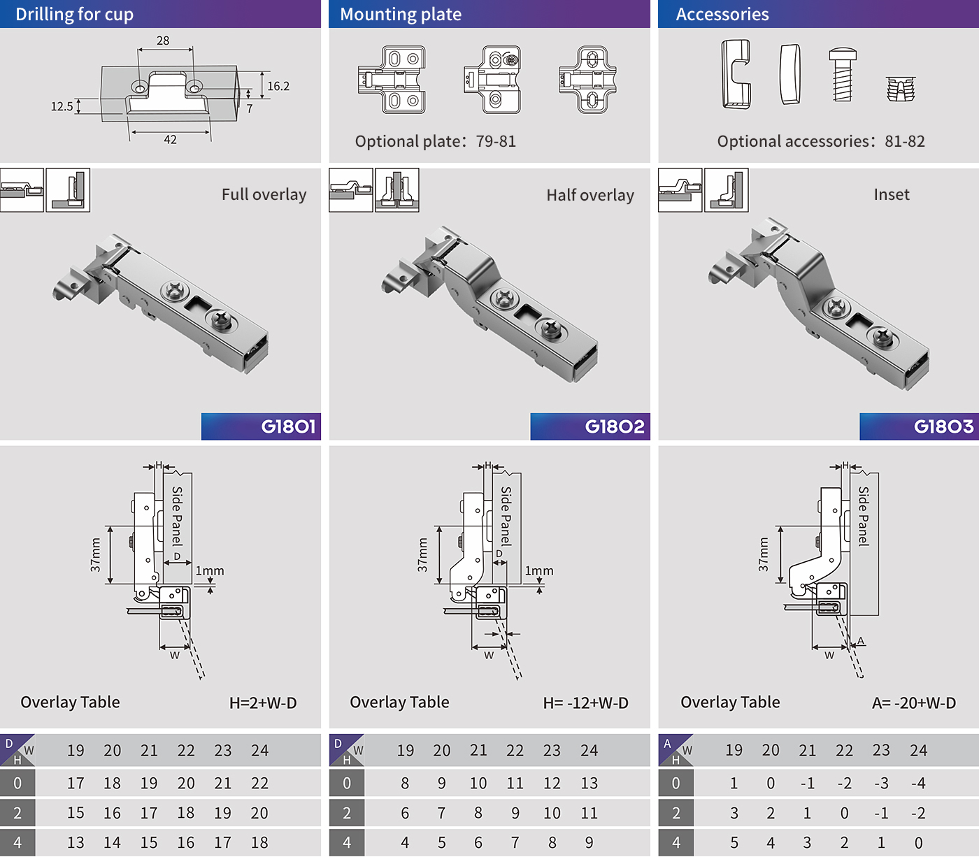 Aluminum frame hinge cup drilling size: 28mm