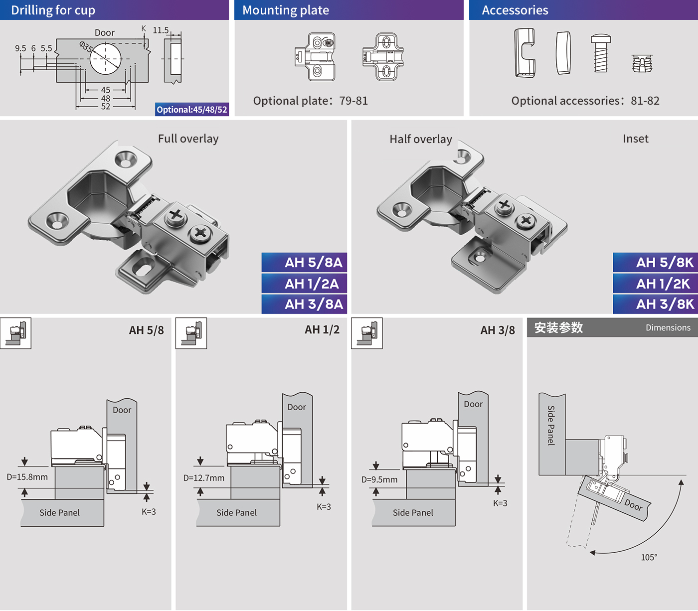-1/2" , 3/8" , 5/8" overlay to application on different cabinets